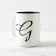 Un beau manuscrit débordant définit votre monogramme, dans ce cas la lettre "G", mais vous pouvez le personnaliser ! Vous pouvez également customiser le type de tasse.