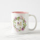 Tasse 2 Couleurs Monogramme Or moderne M Aquarelle Florale Wreath