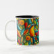 C'est une mignonne tasse à café motif d'oiseaux tropicaux et lumineux. Un cadeau merveilleux pour donner cet anniversaire ou Noël. Des couleurs vives et une jungle dense ajoutent de la couleur et du mouvement.