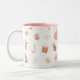 Célébrez les vacances avec cette mignonne tasse à café rose de vacances avec des pastels de pain d'épices brun et rose, des flocons de neige, des sucres de canne, des ornements, des bougies et des cadeaux.