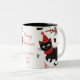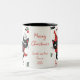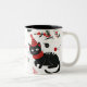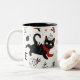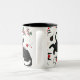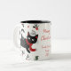 Deux mignons petits chats noirs de Noël se font un plaisir d'arnaquer sur cette tasse de café Yuletide. Porter des chapeaux de Père Noël et des foulards rouge vif, ça doit causer d'adorables ennuis dans tout le décor des vacances. Le design fantaisiste est basé sur un motif rétro. Tout cela donne beaucoup de plaisir à ces amateurs de chat et d'animal de compagnie parmi les membres de votre famille et amis. Cette tasse fait de grands cadeaux pour eux. Oh, et ne t'oublie pas ! Assurez-vous de modifier le texte de l'exemple en fonction des noms et des adresses que vous souhaitez. Vous pouvez garder l'accueil "Meowy Christmas" ou le changer.