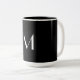Mug à café à deux tons avec arrière - plan noir solide classique et police blanche.Design simple avec un look strict par Alma Wad.Personnalisez-le avec votre monogramme maintenant. Le noir est souvent associé au signe zodiaque Scorpio. Cette couleur reflète la nature intense, mystérieuse et transformatrice de Scorpio. Vous pouvez tenir compte de cela lors du choix d'un cadeau.