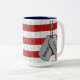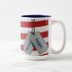 Les étiquettes de chien militaire sur le drapeau.