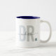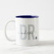 Cute, tasse à café moderne disant DR dans la typographie moderne dans les tons bleu poussiéreux avec votre nom de famille dans la calligraphie script tendance sur une tasse à café deux tons. Un cadeau d'appréciation parfait pour un médecin spécial dans votre vie, un remerciement sincère, ou un cadeau de diplôme de doctorat!