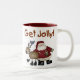 Le vieux Saint-Nicolas Jolly et ses rennes sont présentés sur des cartes de voeux, des tasses, des sacs fourre-tout, des T-shirts et bien plus encore. Le texte dit : "Obtenez Jolly !".