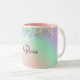 Unicorn Holographic Parties scintillant mug - Un mug de couleur scintillante à la parties scintillant mixte turquoise, rose et mauve. Vous pouvez personnaliser cette tasse en ajoutant votre nom et vos initiales.