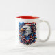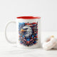 Cette tasse de café en céramique est montrée avec un imprimé patriotique USA Flag Eagle. Customisez cet objet ou achetez tel quel. Image sous licence