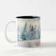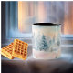 "Profitez de votre café ou de votre thé avec cette tasse artistique, qui présente un merveilleux pays d'hiver paisible dans des teintes d'eau douce. Ce design polyvalent est parfait tel quel, ou vous pouvez le personnaliser en ajoutant votre propre texte sur l'arrière - plan doux. Un beau mélange d'art et de fonction, il fait un merveilleux cadeau ou un souvenir pour la saison d'hiver