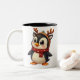 Un mignon dessin vintage jouant petit pingouin pesto bébé en costume de rennes, kawaii. De gros yeux de dessin animé. L'arrière - plan est blanc