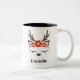 Tasse 2 Couleurs Poinsettia Reindeer Face Nom personnalisé Fête