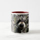 Le racoon sauvage avec son nez a attrapé dans la barrière. Regarde comme il biseautent figurent comment sortir.