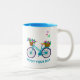 Belle tasse blanche avec un vélo bleu avec des paniers de fleurs colorées avec de jolis papillons derrière. Cette tasse est un grand cadeau pour tout le monde et vous pouvez utiliser cette tasse pour les boissons chaudes et froides et l'utiliser chaque jour comme votre tasse préférée comme inspiration pour profiter de votre journée!