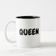 QUEEN TEXTE CONCEPTION TEXTE EN NOIR MUG DEUX TONNES AMATEURS DE CAFÉ COULEUR BLANCHE ARRIÈRE - PLAN POIDS BLANC COULEUR NOIR À L'INTÉRIEUR DU MUG
