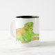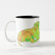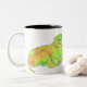 Un Bullmastiff adulte qui vous regarde en train de boire votre canapé chaud préféré. Le corps est coloré dans un motif abstrait orange et vert.