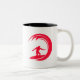 Cool Scarlet La silhouette de surfeur rouge surfant sur une vague sur une planche de surf. Un cadeau idéal pour tous, des surfeurs professionnels à tous ceux qui aiment simplement le surf comme un passe-temps. Les images utilisées sur cet objet sont sous licence et © Graphics Factory.com