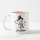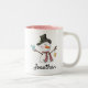 Tasse 2 Couleurs Snowman avec oiseau bleu personnalisable Noël