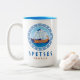 Spetses, Grèce mug café bicolore avec une conception d'un navire antique grec et lettrage de style grec. Cette conception de navire de la Grèce antique a la clé grecque dans un cercle avec la mer et le ciel. Cette conception de style grec fait de ce mug un cadeau idéal ou un souvenir ou pour boire du café pendant que vous êtes en vacances à Spetses.