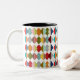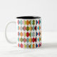 Cette tasse a une conception Bauhaus de diamants qui se chevauchent dans des couleurs rétro.