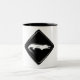 Signe de crocodile noir et blanc avec ombre portée sur une tasse à deux tons.