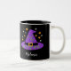 Profitez d'une tasse de sorcières brasser dans cette sensation de sorcellerie violette et noire ! Tasse à café à deux tons d'Halloween. Ce design présente un casquette de sorcière violette avec les mots "sensation de sorcière !" en vert citron, entouré d'étoiles blanches et orange sur un arrière - plan noir.