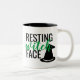 Visage de repos de sorcière ! Appréciez votre boisson chaude préférée avec cette tasse de café deux-modifiée la tonalité drôle d'expression de Halloween (ou tout autre jour d'ailleurs). Caractéristiques de conception ce une police noire de caractère sans obit et sans empattement, avec un manuscrit de vert de sorcière, à côté d'un casquette de sorcière. Halloween heureux !