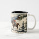Donnez quelque chose d'unique à cela pour l'amant occidental dans votre famille! Obtenez cette énorme cowboy Occidentale Personnalisée Mug à café à deux tons avec une aquarelle les années 50 rétro d'une main de ranch sur un cheval dans les montagnes enneigées et un cabine rustique dans l'arrière - plan! Ajoutez ce nom spécial pour cette touche spéciale ! Créer des souvenirs durables juste pour vous de Up On the Mountain!