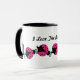 Tasse à café drôle coccinelle rose et noir "J'adore les coléoptères".