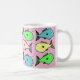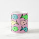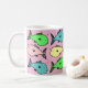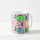 Illustration colorée de poissons décorent cette tasse de café. Une idée cadeau pour quiconque garde des poissons tropicaux peut-être. Design de poissons tropicaux. Une jolie tasse design décorée d'un motif de poissons colorés. Idée cadeau pour un propriétaire de poissons tropicaux. Arrière - plan rose.
