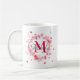 Tasse à café élégante avec monogramme floral. © Radenbrea Studios sur Zazzle. De belles fleurs douces encadrent la zone où vous pouvez personnaliser cette tasse à café en changeant le nom pour le vôtre, ou celui de quelqu'un d'autre pour un cadeau.