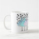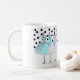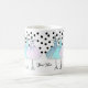 tasse à café monégasée. Robes bleues, roses et turquoises sur cintres. arrière - plan de points Polka Ajoutez votre nom ou monogramme pour le personnaliser.