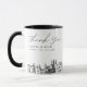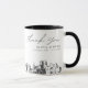 Tasse à café avec vue moderne sur la skyline de Columbus en cadeau avec la mention "merci". Le design présente un croquis époustouflant avec la possibilité de personnaliser vos noms et votre emplacement exact. Entrez dans l'outil de conception Zazzle pour des personnalisations supplémentaires.