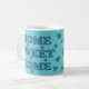 Une tasse de café de style campagnard avec "la maison douce à la maison" et coeurs dans le motif de bigorneau de Mix'ne Match de différentes échelles sur un arrière - plan d'Aqua que vous pouvez facilement changer, si vous souhaitez, utilisant le bouton de personnaliser et puis le bouton d'édition.