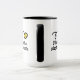 Cadeau de tasse amusant pour joueur de tennis avec un style de dessin animé mignon de balle de tennis jaune rebondissant sur le court. Accompagné d'un slogan humoristique, blague, citation, dicton ou autre texte. Embrasse mon as ! Idée de cadeau d'anniversaire amusant pour les enfants, maman, papa, entraîneur, ami, patron, collègue, etc. Vaisselle personnalisée pour la maison ou le bureau.