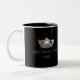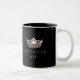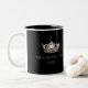 Une copie argentée brillante de couronne a porté l'avant et le centre en équilibre de chaque côté de cette tasse de café/cacao. Montré sur une tasse noire et blanche avec un texte gris intérieur et coordonné noir. Customisez votre intérieur et personnalisez le texte témoin à vos propres. Montré comme Mlle Hamilton 2018.