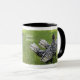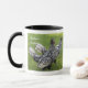 Belle représentation de poulets bantam noir et blanc sur une tasse bicolore avec rebord noir ! Idéal pour tous les collectionneurs de poules !