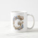 Cette tasse à café présente une lettre initiale ornée 'G' dans le style baroque et convient à une princesse. Ce serait un beau cadeau de demoiselle d'honneur, ou un cadeau pour la fête des mères ou un anniversaire.