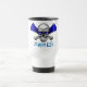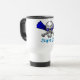 Nagez la tasse blanche de voyage de la vie faite avec les ailerons et les lunettes bleus de crâne