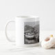 Tasse Cape Town Waterfront Harbor Table Mountain noir et blanc pour le café / thé à ajouter à votre collection à la maison / au bureau / en entreprise. Une excellente idée de cadeau pour tous ceux qui aiment l'Afrique et Cape Town, les voyages, l'art monochrome, les objets uniques de design personnalisé.