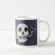 Appréciez une tasse chaude de Joe avec un peu d'humour tordu. Crâne avec la cigarette allumée qui semble rougeoyer sur un fond mauve-foncé. L'autre côté lit, "Smokin chaud".