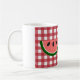 Caractéristiques de conception ce d'amusement un motif checkered rouge de nappe et une tranche de pastèque. Pour personnaliser, cliquez sur dessus la personnaliser il bouton.
