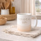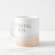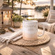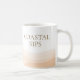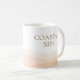 Design de typographie neutre de plage en blanc et taupe avec une base de bloc de couleur large et lettrage Coastal Sips serif. Style côtier moderne pour les cuisines de maison de lac, les coins petit-déjeuner en bois clair et les routines de café du matin au bord de la mer qui recherchent un contraste net et un détail de rivage raffiné.