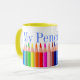 Grand pour des enfants, des professeurs, ou n'importe qui le bureau, cette tasse colorée a des graphiques des crayons colorés alignés, tout autour de la tasse. Le texte bleu lit ma tasse de crayon. Fait d'un gentil le cadeau professeur, cadeau du jour de mère, ou un cadeau spécial pour votre enfant préféré, ajoutent juste des crayons ou des crayons pour un cadeau doux.