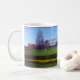 Tasse blanche classique avec une image polychrome de l'école de John Lea circulant la tasse.