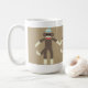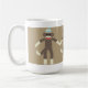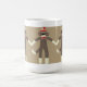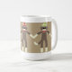 Cette tasse comporte un trio des amis heureux de singe de chaussette sur un arrière - plan beige. Ces amusement et article mignon encourageront votre jour.