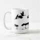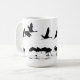 Le collage merveilleux de l'art numérique de silhouette de la photographie des oiseaux de grue de Sandhill fonctionnant pour décoller, et volant, est sur cette tasse.