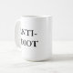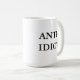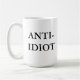 Fatigué de la stupidité ? Cette tasse indiquera au monde que vous vous sentez. Grand pour n'importe qui qui doit avoir affaire avec des idiots de façon régulière, cette tasse indique dans simple, noir et blanc, "Anti-Idiot".