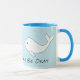 Chaque côté a une baleine mignonne de beluga. "Tout baleine soit ok" est enroulé autour de la tasse.