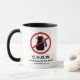 Le chat chante heureusement sur la barrière vue par une portée de fusil… il décidera de partir à temps ? Obtenez la série entière de magnet de bande dessinée de haineux de chat par des haineux de chat du monde (C.H.O.W.)