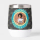 Célébrez votre diplômé avec un élégant tumbler photo dans des tons charbon chic, jaune doux et turquoise audacieux. Le design présente la photo de votre diplômé avec leur nom, école et année de promotion, accentué par un motif classique de bonnet de diplômé. L'isolation double paroi maintient les boissons à la température parfaite, tandis que la construction en acier inoxydable durable garantit une utilisation durable.