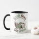 Une tasse à café représentant un paysage de montagne au coucher du soleil avec une tente dressée, avec la phrase "Échappez à la routine" centrée autour de l'image. Le design suggère une évasion paisible dans la nature, offrant un sentiment de tranquillité et d'aventure.